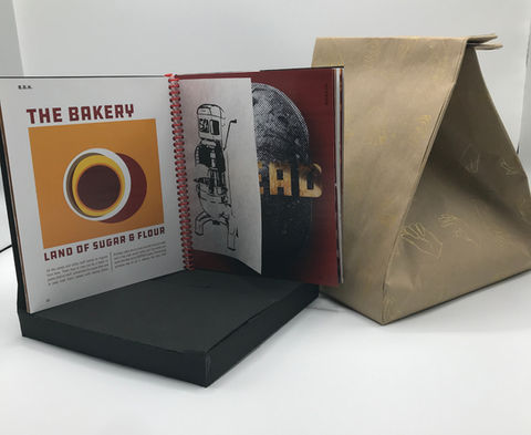 By combining my past career in professional kitchens with my new career in design, I created this book. Within its pages are descriptions, stories, and articles that influenced me over the decades.This book is conceptual. It doesn’t adhere to one particular layout. Each page or spread contributes to the chaos that is a professional kitchen—some pages rely on materials found in kitchens, others on graphics and photography. In B.O.H., I break down the various roles and positions, as well as the places within the professional kitchen. As the reader turns the pages, they’re confronted by various inserts—some with images, others with personal stories from my career.The packaging for the book emulates delivery food: a to-go box that comes in a bag I screen printed with a cut-finger motif that’s also used throughout the book.
